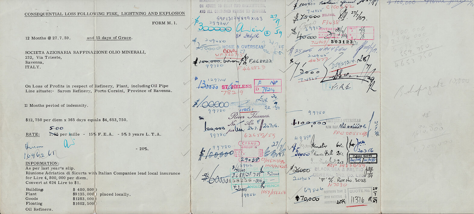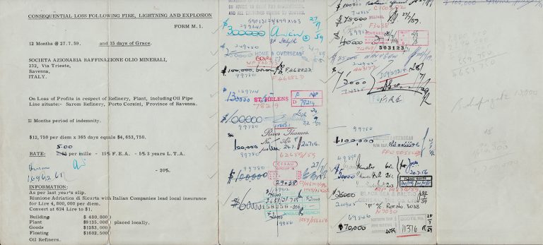 Underwriting Slip for Refinery Loss of Profits, 1959