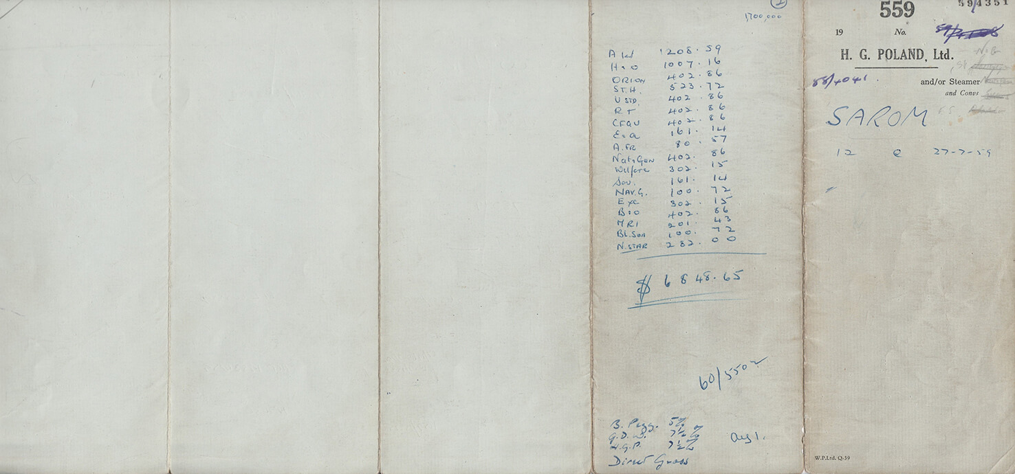 This slip records insurance placed through H. G. Poland Ltd, broker number 559, covering loss-of-profits risk for a refinery plant in Ravenna, Italy. It lists numerous participating insurers—many long since merged or dissolved—identified only by initials on the reverse. Part of a set of consecutive-year slips donated to the Insurance Museum in 2023.